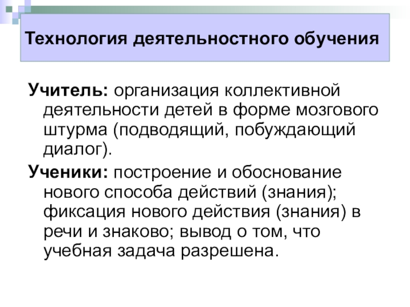 Учитель: организация коллективной деятельности детей в форме мозгового штурма