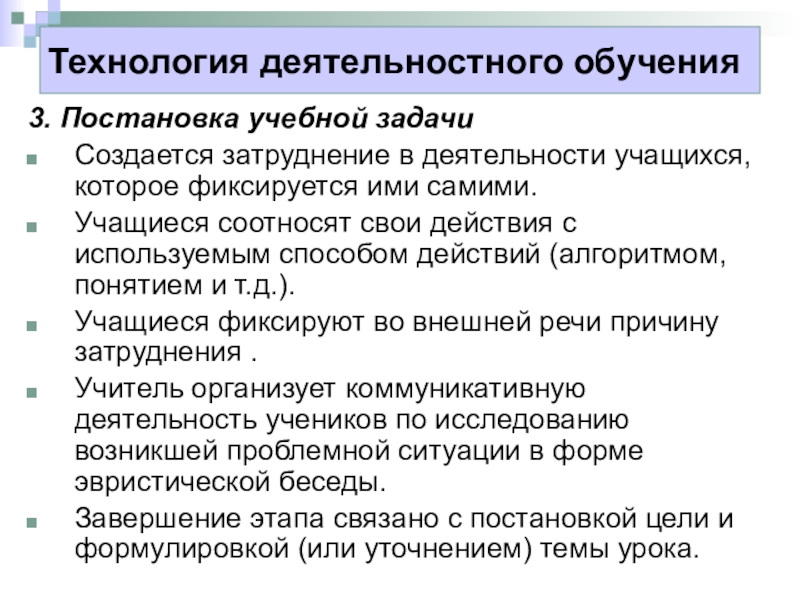Завершение этапа связано с постановкой цели и формулировкой (или уточнением) темы урока.