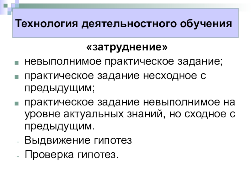 На данном этапе предполагается выбор учащимися метода разрешения проблемной ситуации и на основе выбранного метода выдвижение и проверка ими гипотез.