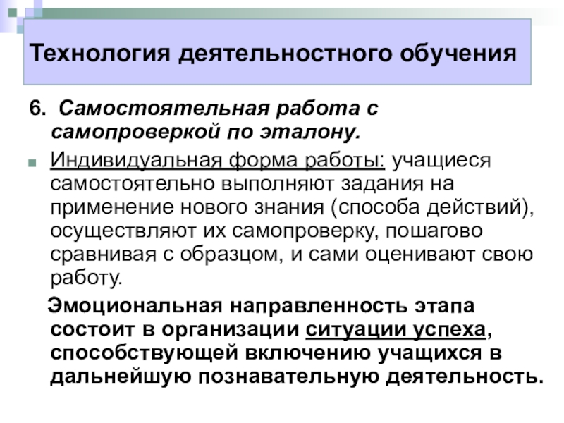 Эмоциональная направленность этапа состоит в организации ситуации успеха, способствующей включению учащихся в дальнейшую познавательную деятельность.