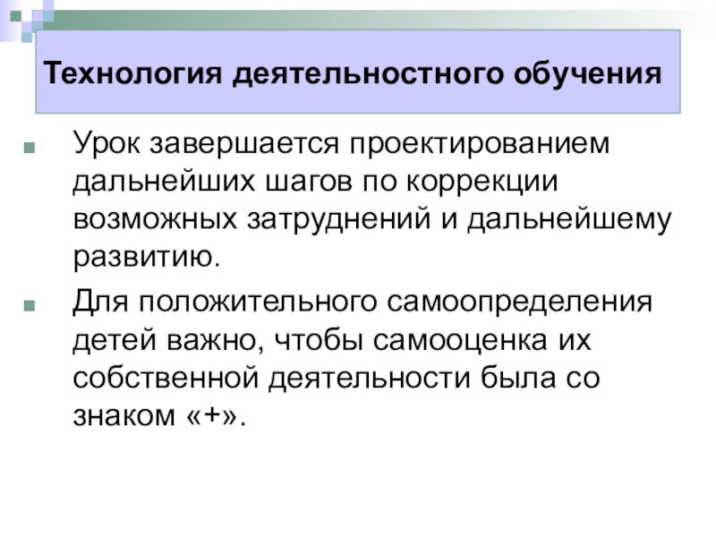 Урок завершается проектированием дальнейших шагов по коррекции возможных затруднений