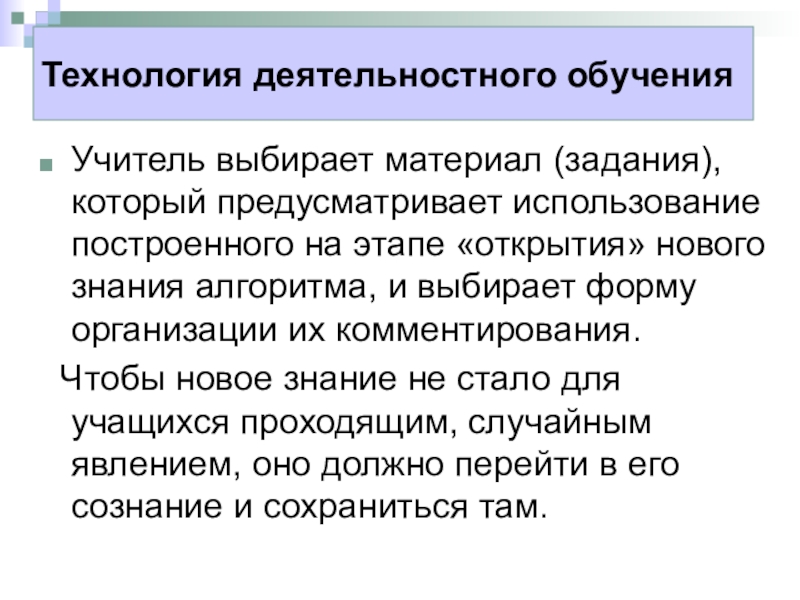 Чтобы новое знание не стало для учащихся проходящим, случайным явлением, оно должно перейти в его сознание и сохраниться там.