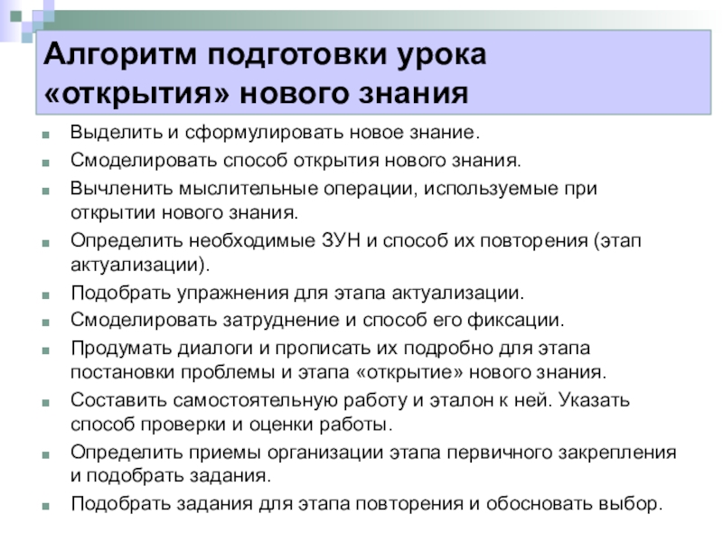 Определить необходимые ЗУН и способ их повторения (этап актуализации).