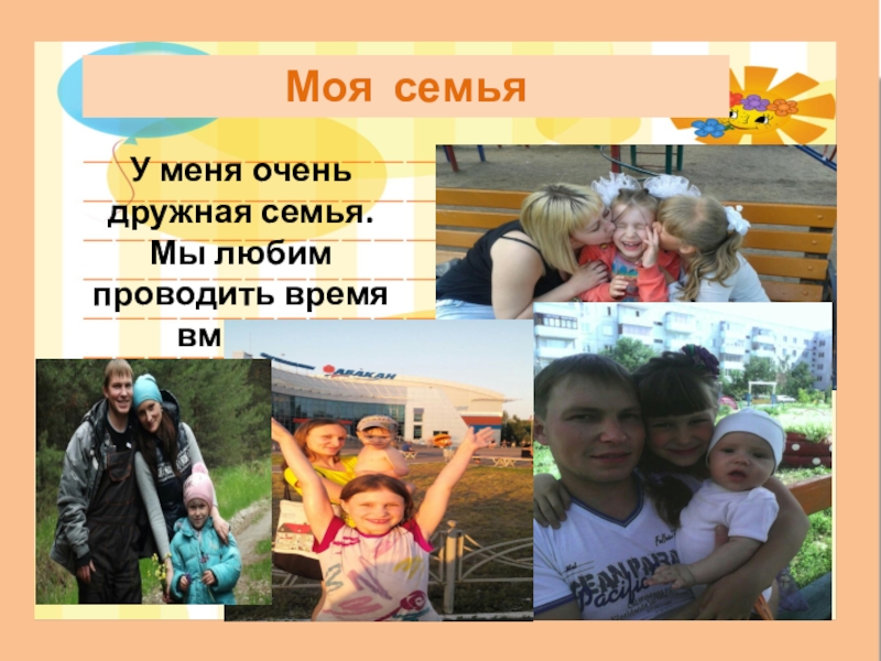 Моя семьяУ меня очень дружная семья. Мы любим проводить время вместе.