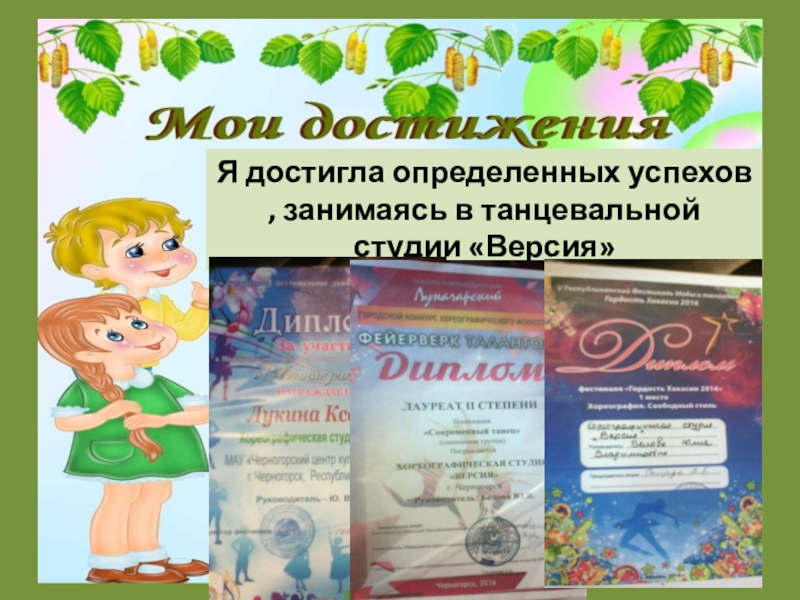 Слайд 6Я достигла определенных успехов , занимаясь в танцевальной студии «Версия»