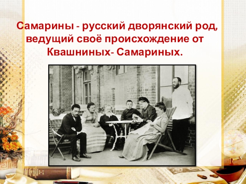 Слайд 16Летом в имении Самариных всегда было многолюдно. Месяцами здесь жила многочисленная