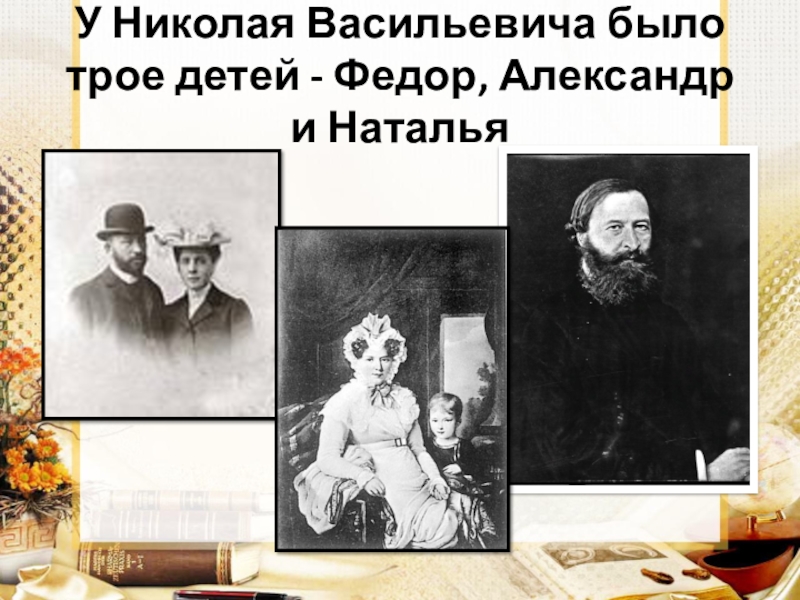 Слайд 7У Николая Васильевича было трое детей - Федор, Александр и Наталья