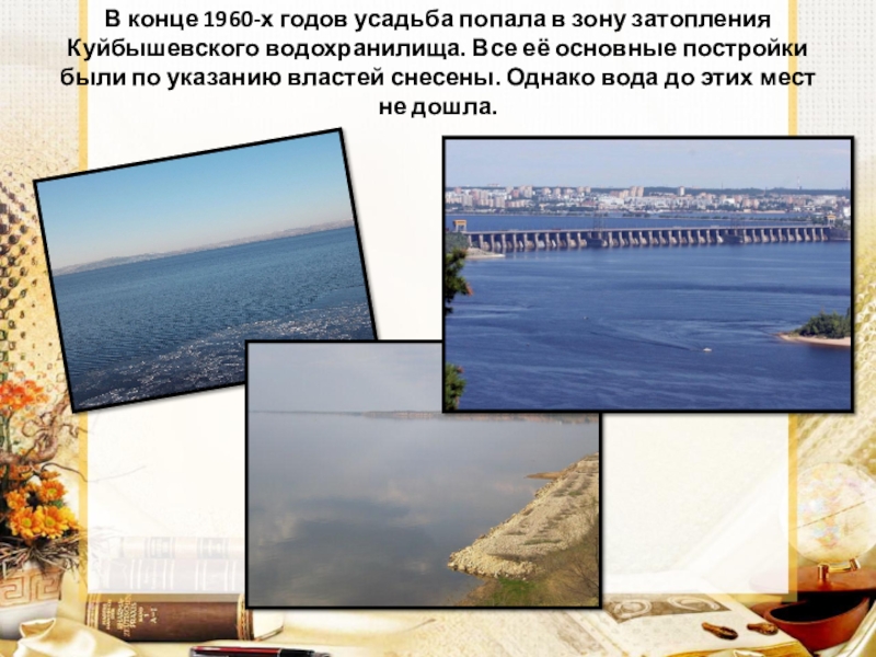 Слайд 17В конце 1960-х годов усадьба попала в зону затопления Куйбышевского водохранилища.
