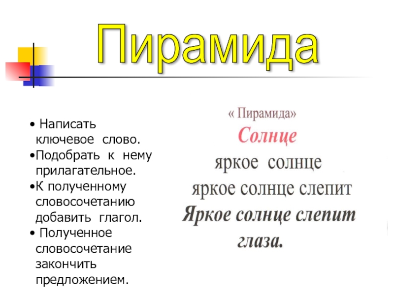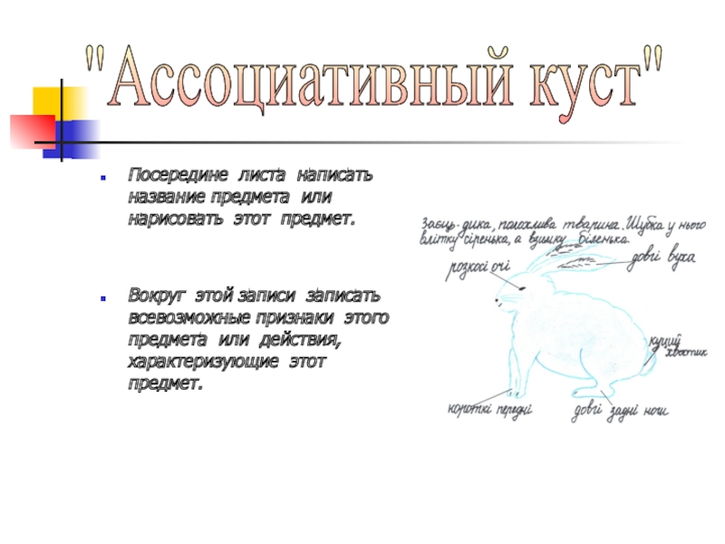 Вокруг этой записи записать всевозможные признаки этого предмета или действия, характеризующие этот предмет.
