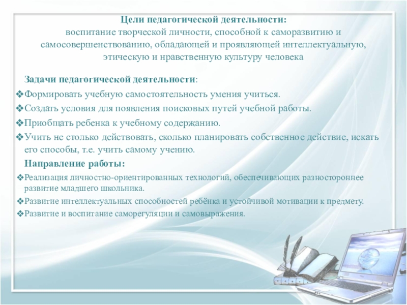 Задачи педагогической деятельности: