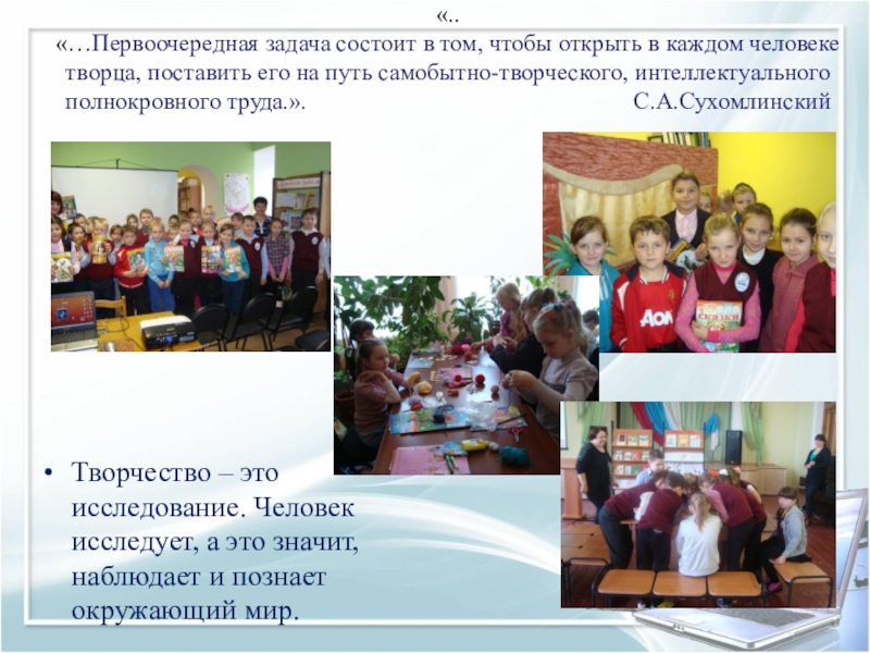 Творчество – это исследование. Человек исследует, а это значит, наблюдает и познает окружающий мир.