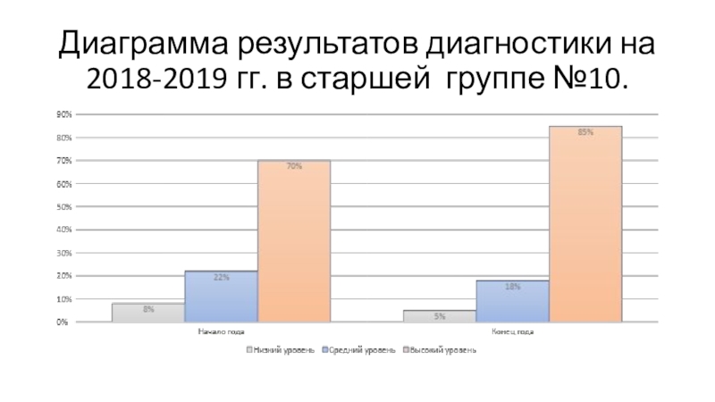 Слайд 9Диаграмма результатов диагностики на 2018-2019 гг. в старшей группе №10.