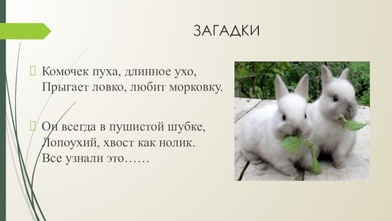 Прыгает ловко, любит морковку.