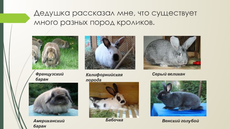 Слайд 6Дедушка рассказал мне, что существует много разных пород кроликов.