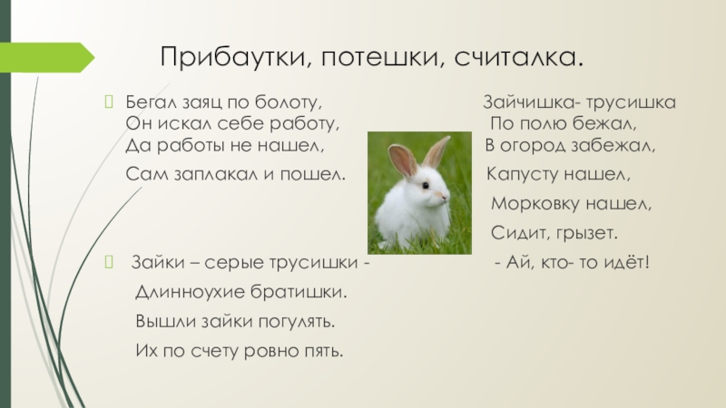 Слайд 22Прибаутки, потешки, считалка.