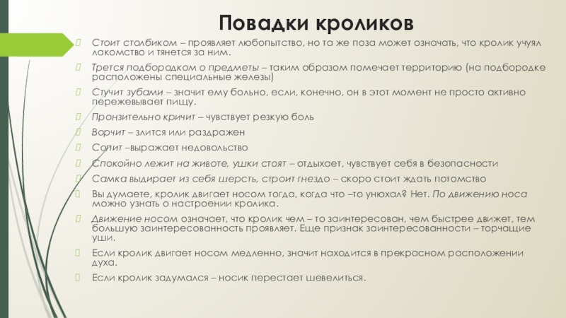 Слайд 10 Повадки кроликов