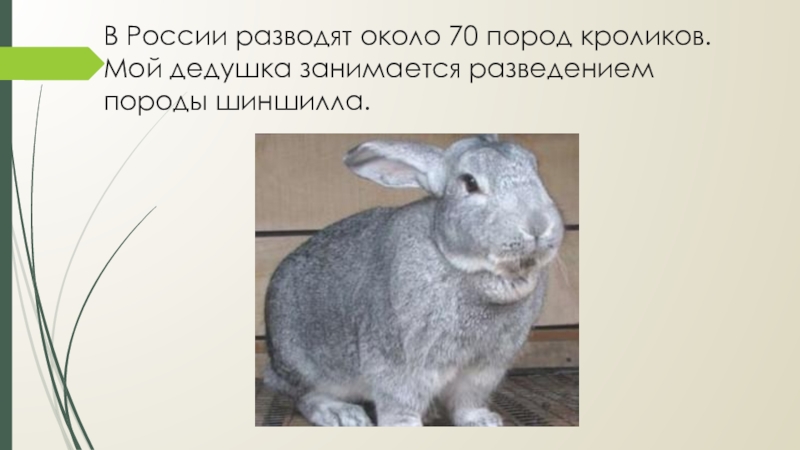 Слайд 7В России разводят около 70 пород кроликов. Мой дедушка занимается разведением
