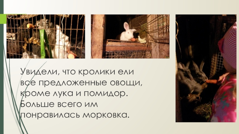 Слайд 13Увидели, что кролики ели все предложенные овощи, кроме лука и помидор.