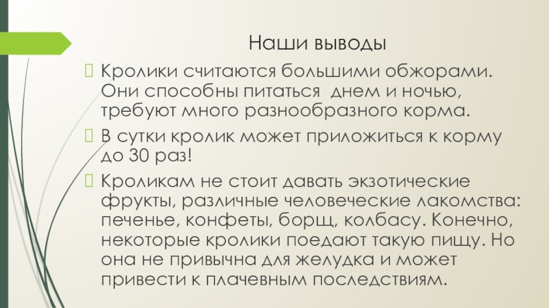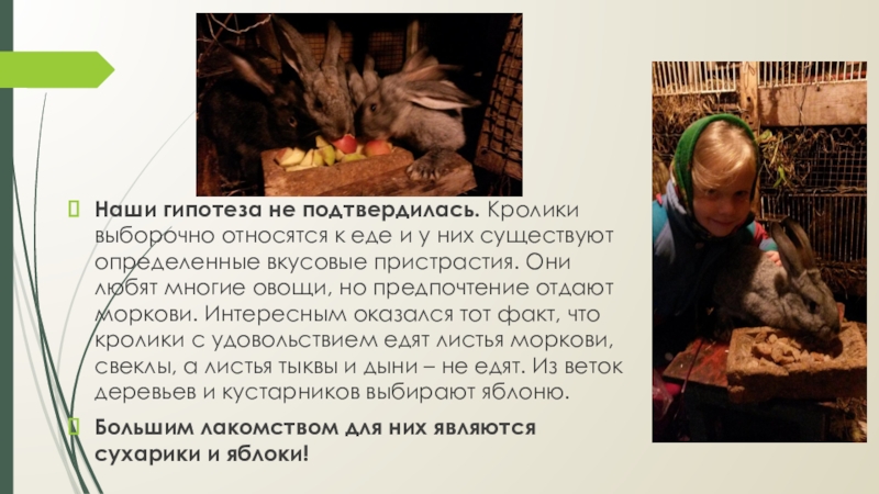 Слайд 19Наши гипотеза не подтвердилась. Кролики выборочно относятся к еде и у