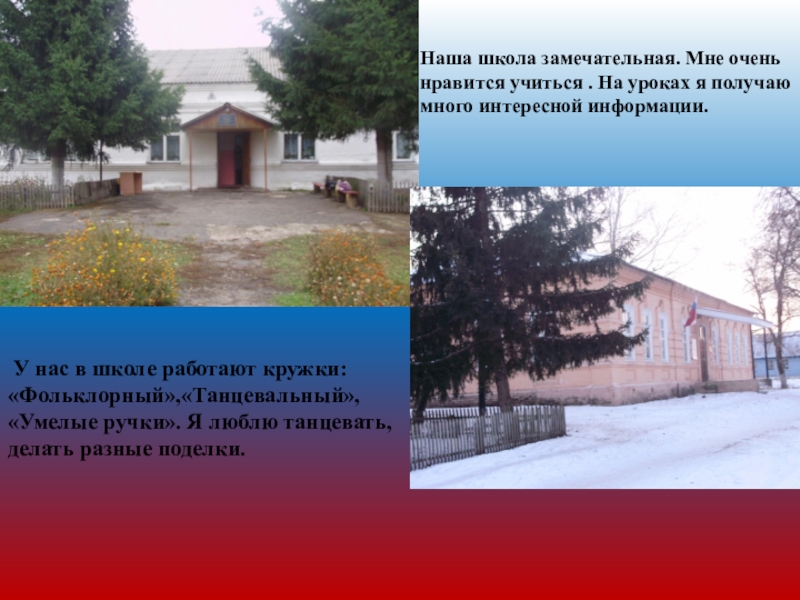 Наша школа замечательная. Мне очень нравится учиться . На уроках я получаю