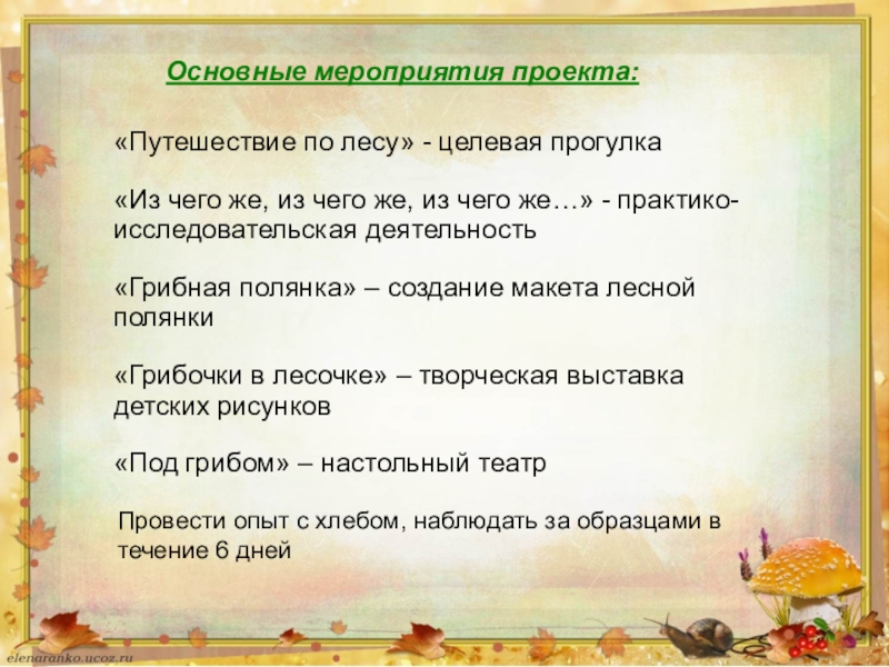 Провести опыт с хлебом, наблюдать за образцами в течение 6 дней