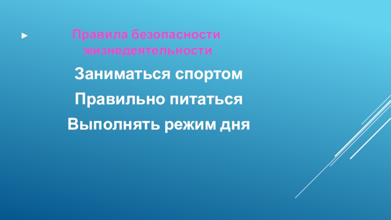 Правила безопасности  								жизнедеятельностиЗаниматься спортомПравильно питатьсяВыполнять режим дня