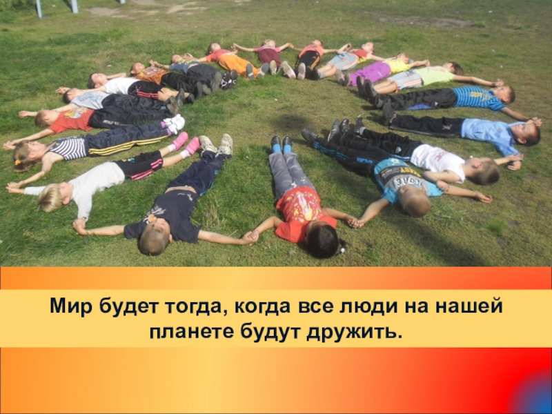 Слайд 27Мир будет тогда, когда все люди на нашей планете будут дружить.