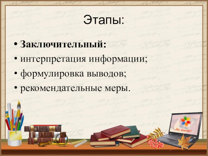 Это сайт презентаций, где можно хранить и обмениваться своими презентациями, докладами, проектами, шаблонами в формате PowerPoint с другими пользователями. Мы помогаем школьникам, студентам, учителям, преподавателям хранить и обмениваться учебными материалами.