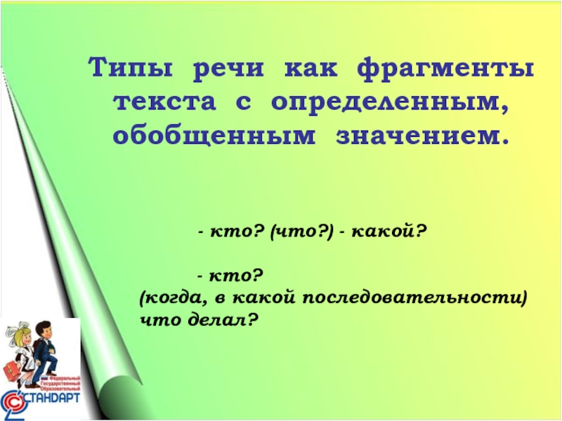 Типы речи как фрагменты текста с определенным, обобщенным значением.