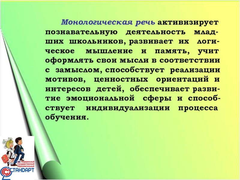 Слайд 5 Монологическая речь активизирует познавательную деятельность