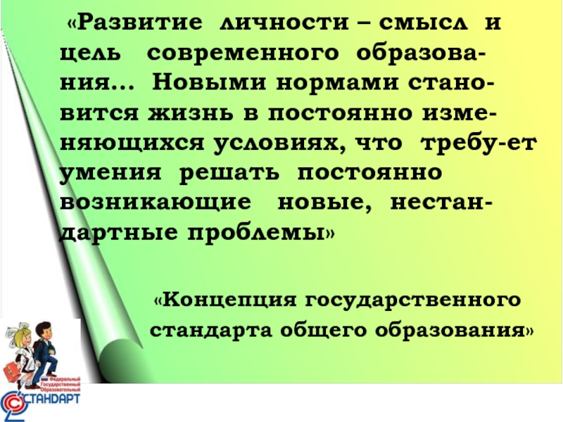 Слайд 6 «Развитие личности – смысл и цель современного образова-ния…