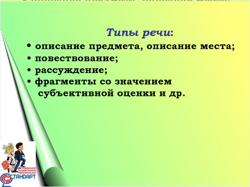Слайд 9Типы речи как фрагменты текста с определенным, обобщенным значением.