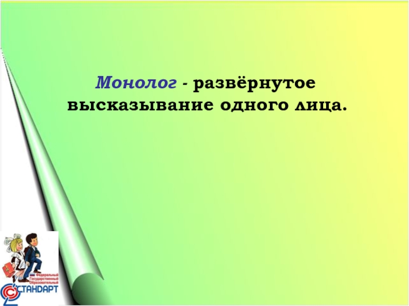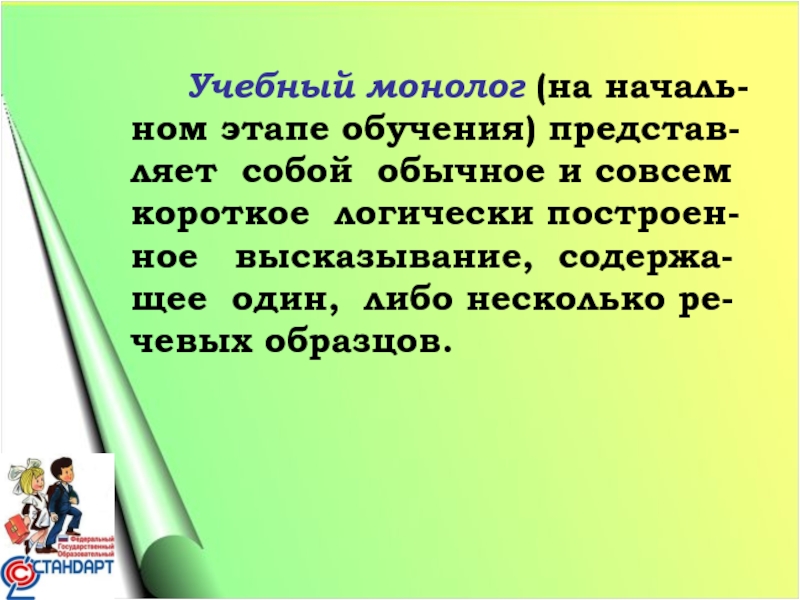 Слайд 7 Учебный монолог (на началь-ном этапе обучения) представ-ляет