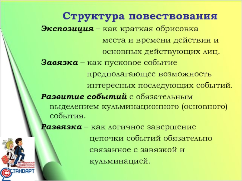 Развитие событий с обязательным выделением кульминационного (основного) события.