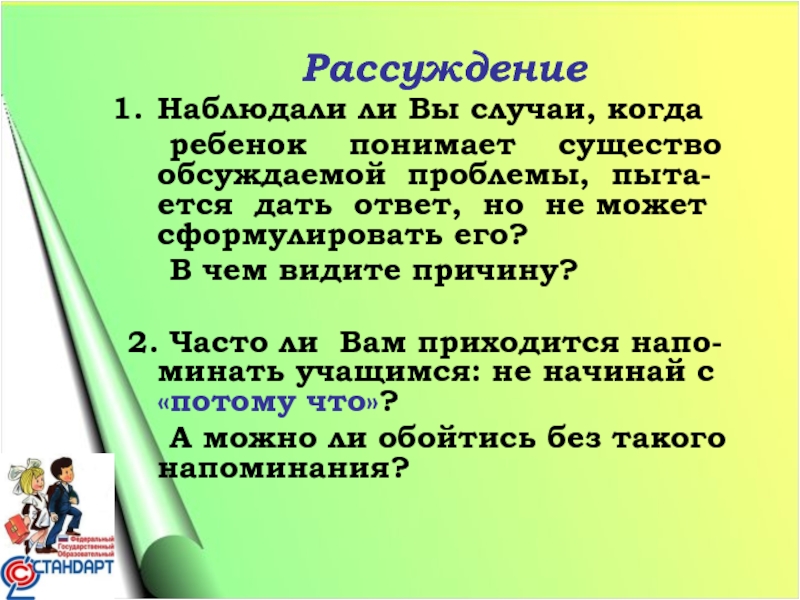 2. Часто ли Вам приходится напо-минать учащимся: не начинай с «потому что»?