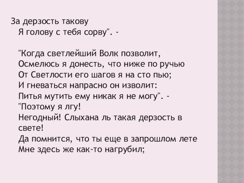 Слайд 6-Прослушайте басню Ивана Андреевича Крылова «Волк и ягнёнок» и постарайтесь выделить