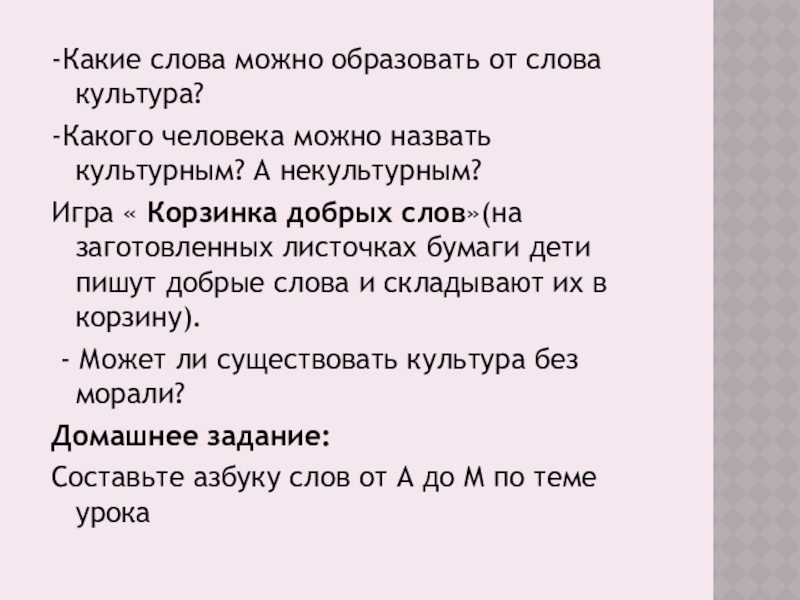 Слайд 17-Какие слова можно образовать от слова культура?
