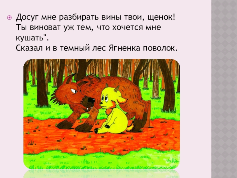 Сказал и в темный лес Ягненка поволок.