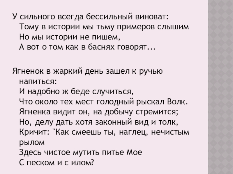 Слайд 7У сильного всегда бессильный виноват: