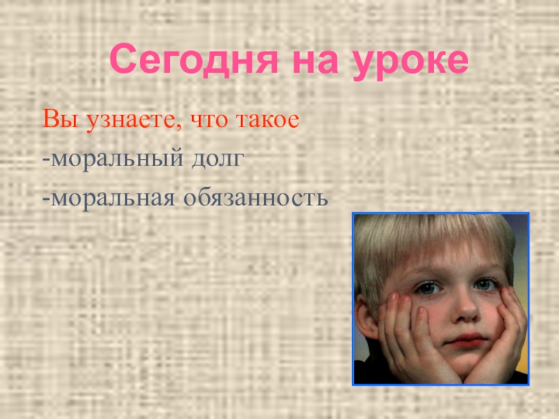 Вы узнаете, что такое-моральный долг-моральная обязанностьСегодня на уроке