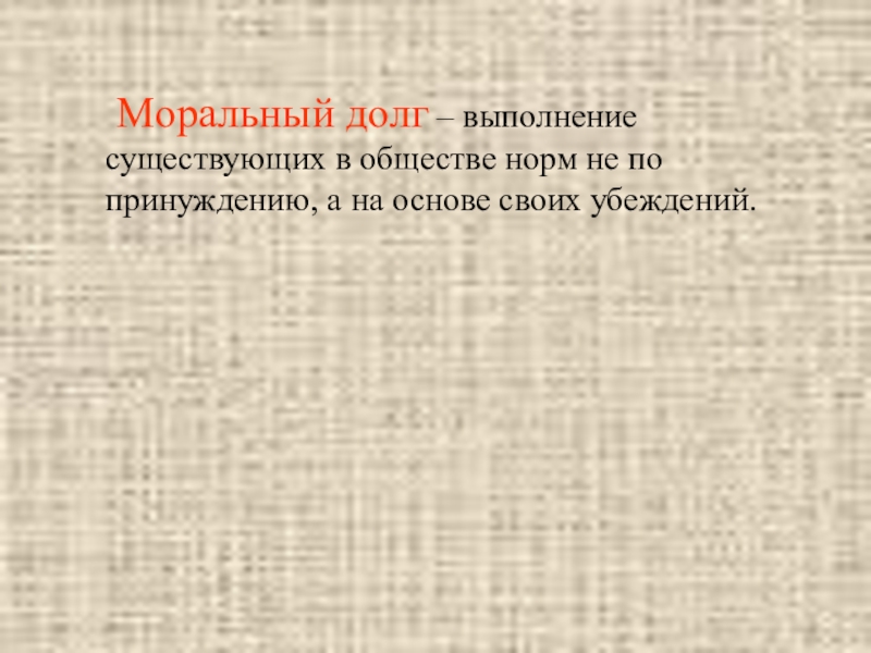 Моральный долг – выполнение существующих в обществе норм не по принуждению, а на основе