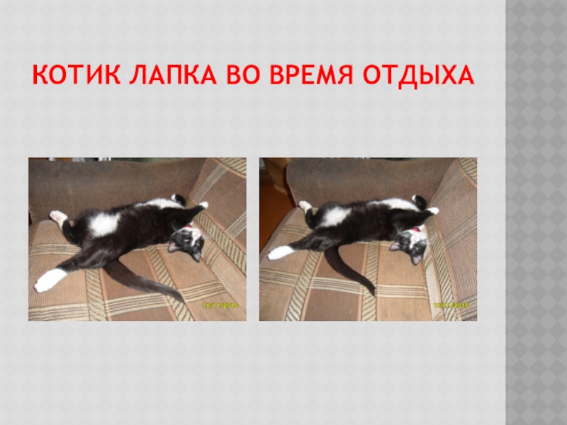 Слайд 6Котик Лапка во время отдыха