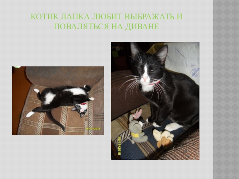 Слайд 3Котик Лапка любит выбражать и поваляться на диване