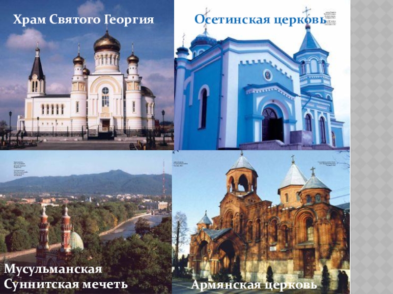 Армянская церковьОсетинская церковьМусульманская Суннитская мечетьХрам Святого Георгия