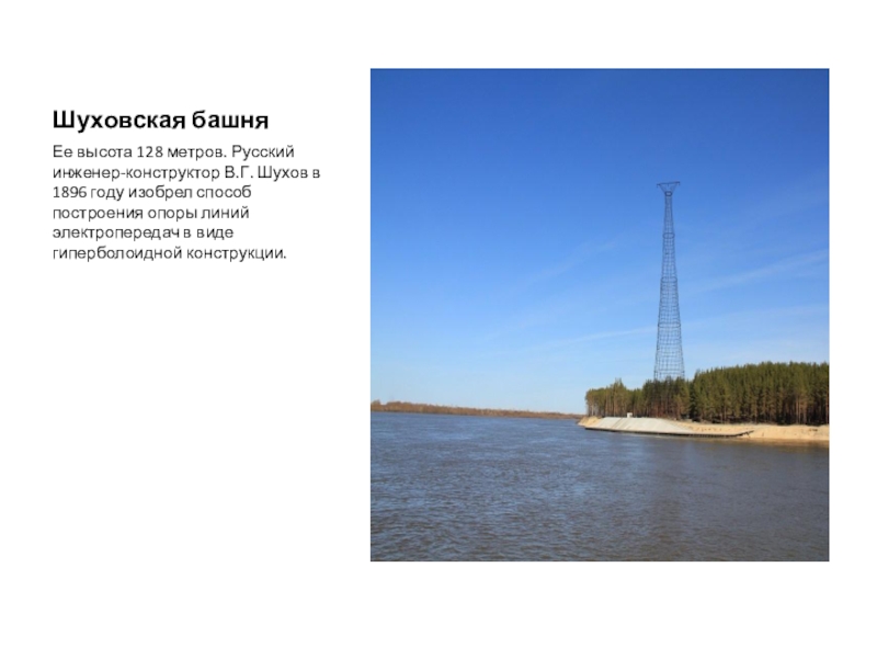 Ее высота 128 метров. Русский инженер-конструктор В.Г. Шухов в 1896