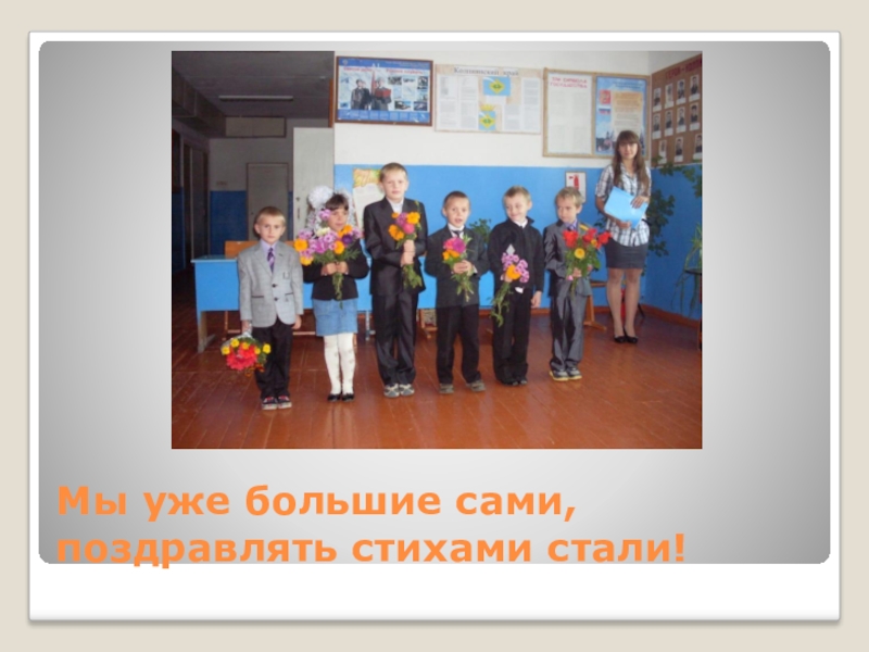 Слайд 4Мы уже большие сами, поздравлять стихами стали!