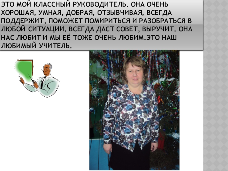 Слайд 6Это мой классный руководитель. Она очень хорошая, умная, добрая, отзывчивая, всегда