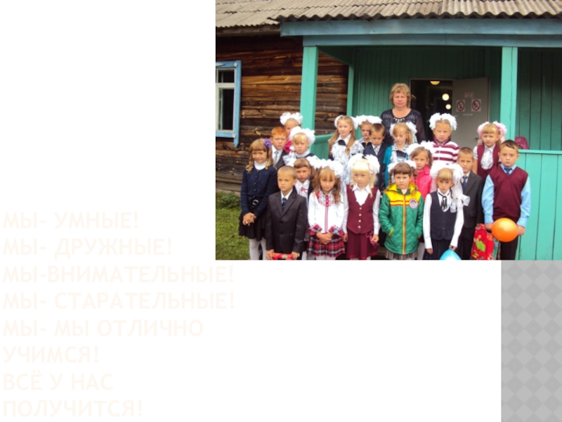Слайд 4Мы- умные! Мы- дружные! Мы-внимательные! Мы- старательные! Мы- мы отлично учимся! Всё у нас получится!