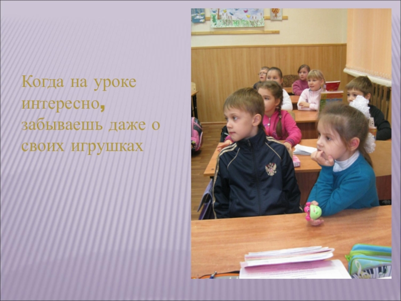 Слайд 3Когда на уроке интересно, забываешь даже о своих игрушках