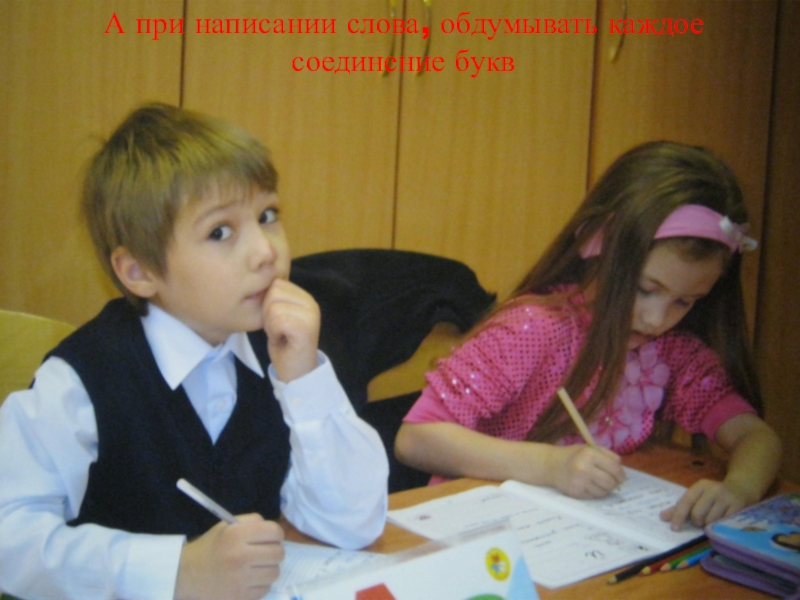 Слайд 6А при написании слова, обдумывать каждое соединение букв